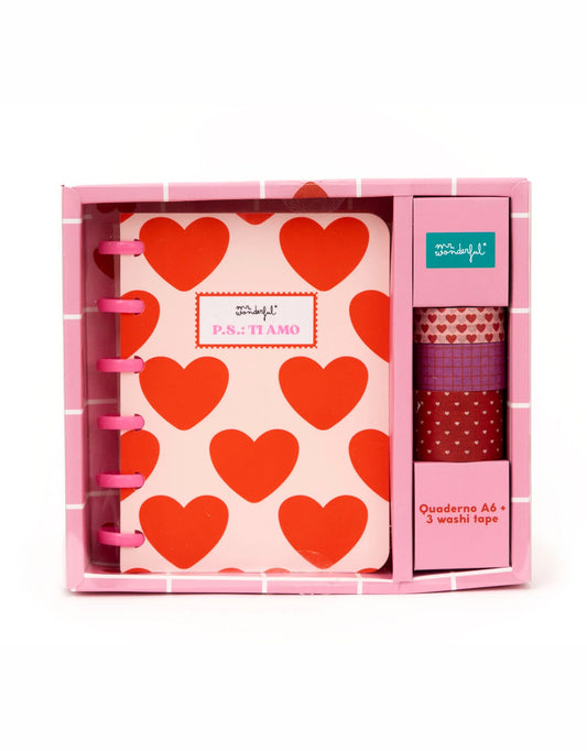Set Quaderno A6 Messaggi d’Amore + 3 Washi Tape – P.S.: Ti amo | Mr. Wonderful