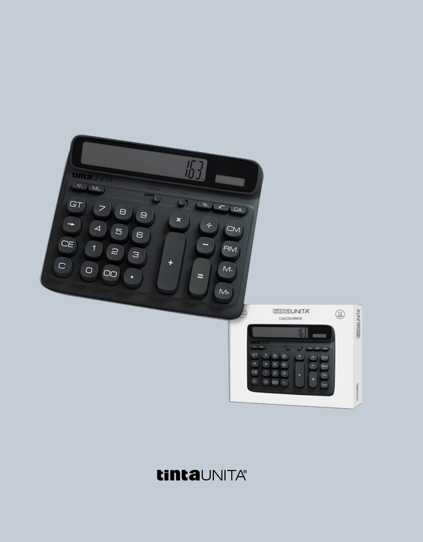 La calcolatrice Tinta Unita Total Black è la scelta ideale per chi cerca uno strumento affidabile e dal design curato, in grado di garantire funzionalità e durata nel tempo. Il suo stile sobrio ed elegante la rende perfetta anche come accessorio da scrivania.