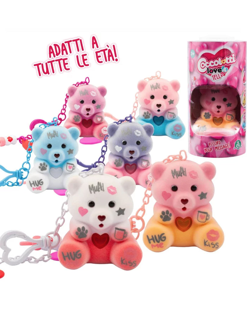 Scopri il nuovo Coccolotto Love&Tell, l'orsetto interattivo firmato Giochi Preziosi, che sta conquistando tutti con il suo stile unico e il design irresistibile! Disponibile in 6 modelli coloratissimi con loghi e scritte cool, è il compagno perfetto per chi cerca un regalo dolce e originale.