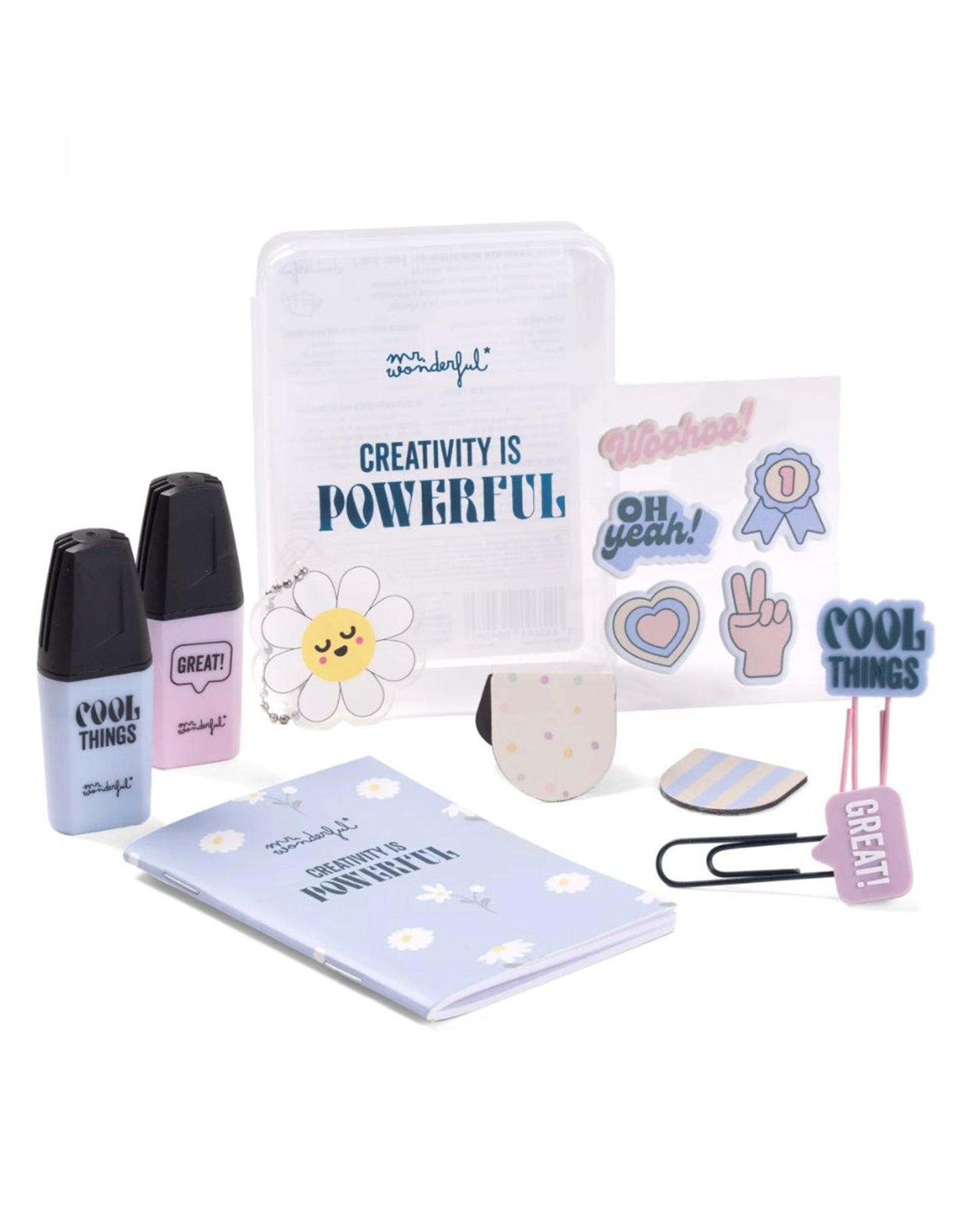 Questo set è il regalo perfetto per chi ama la cartoleria kawaii e gli accessori per personalizzare diari e planner. Con colori allegri e uno stile inconfondibile Mr. Wonderful, il tuo diario non sarà più lo stesso!