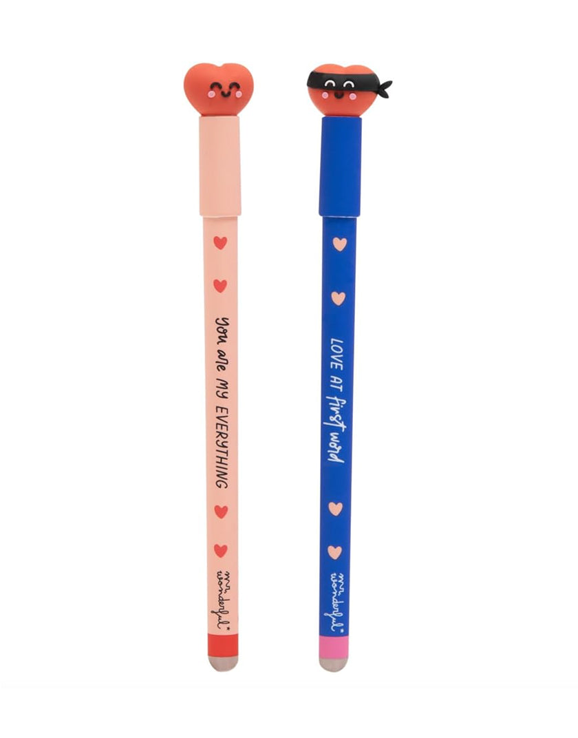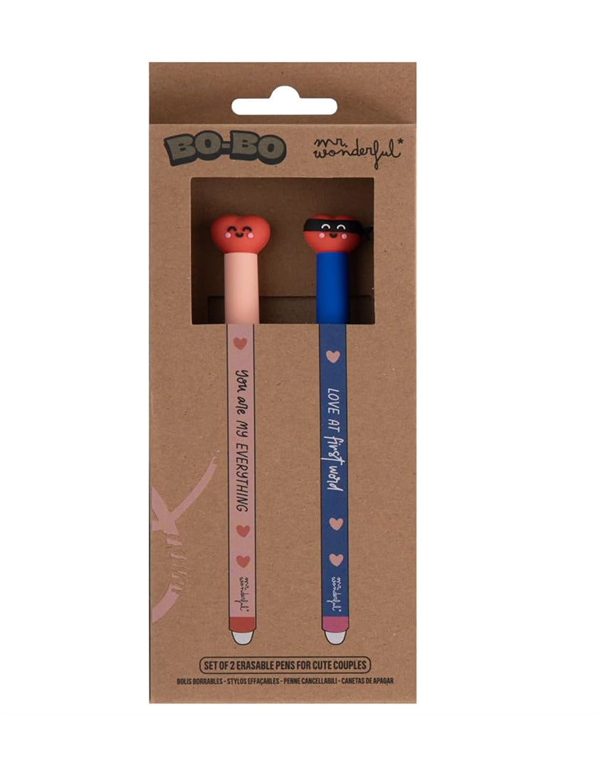 Non lasciarti sfuggire il Set di 2 Penne Cancellabili Mr. Wonderful e aggiungi un tocco di amore e praticità alla tua scrittura!