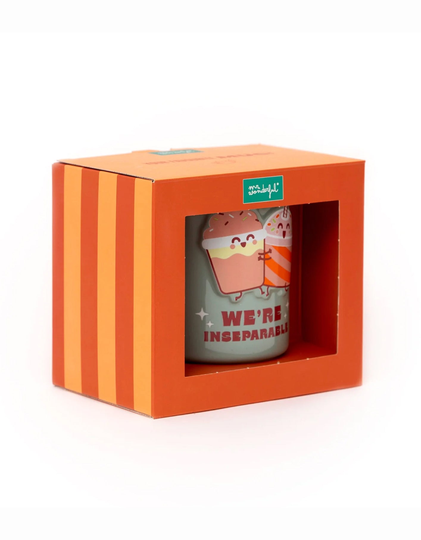 Sorprendi la tua best friend o chi ami con questa tazza 3D in ceramica Mr. Wonderful: due simpatici milkshake in rilievo e un messaggio tenero che celebra l’amicizia – "We’re inseparable!"